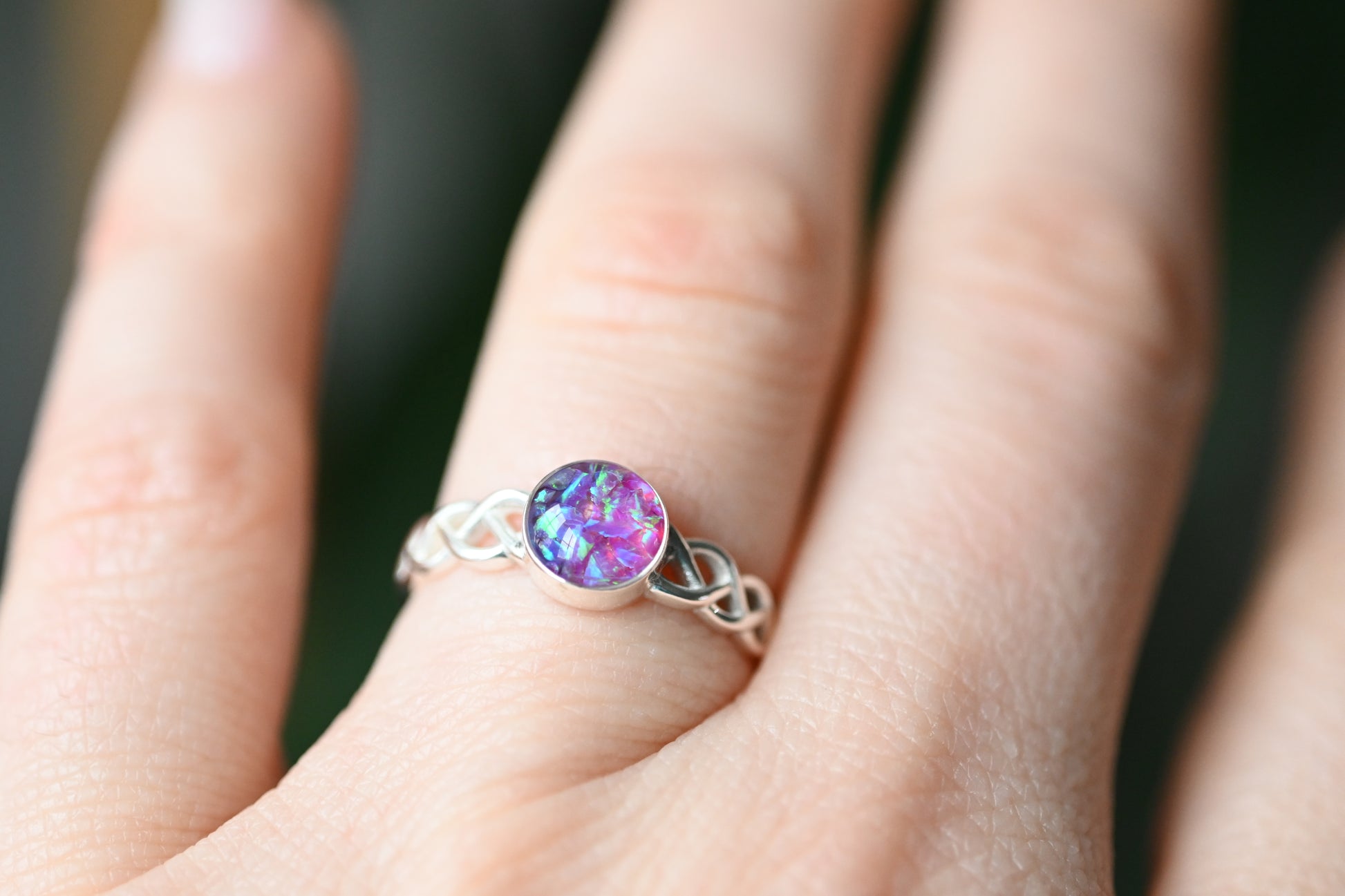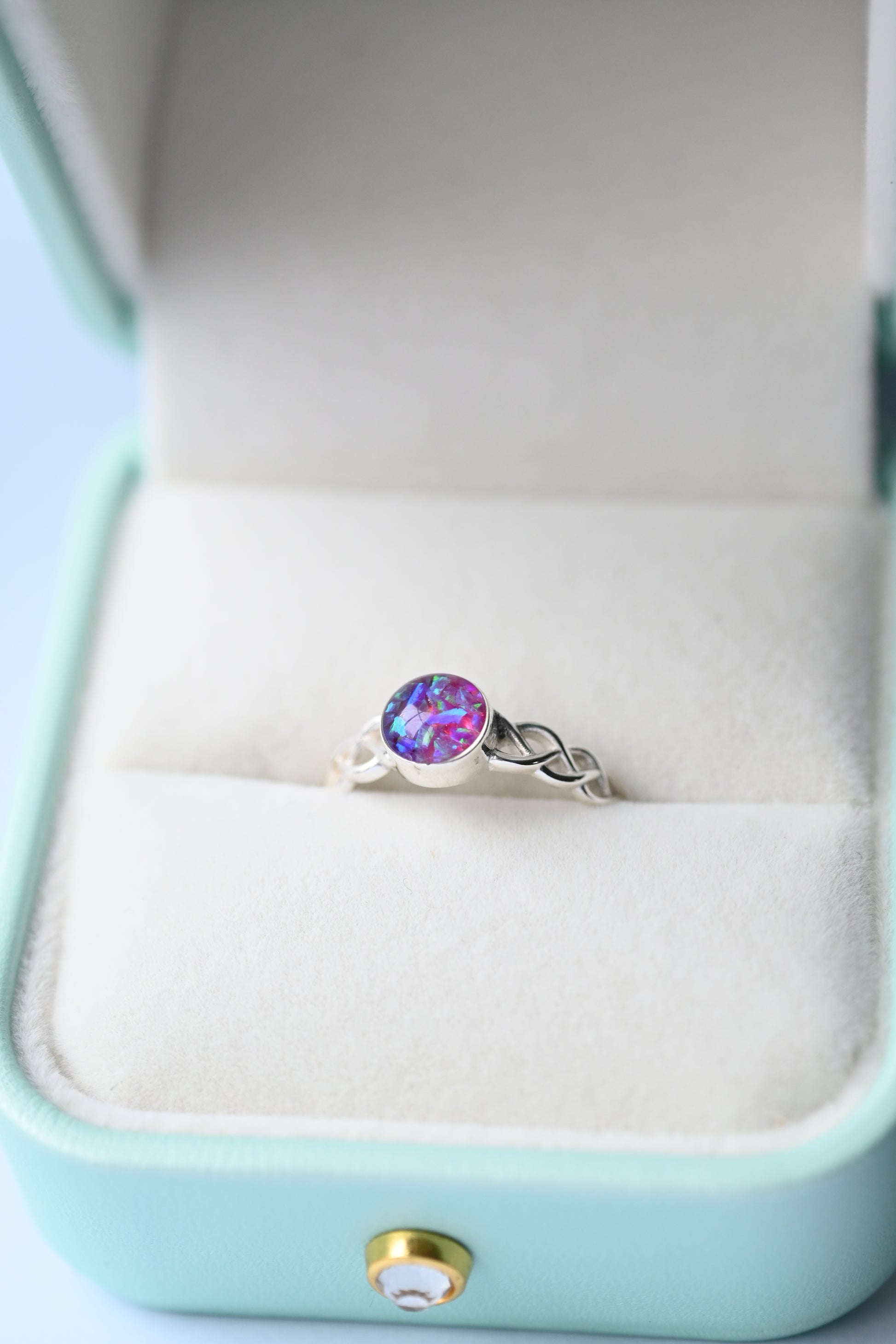 The Celtic design adds timeless symbolism, making this ring a beautiful tribute to a lost loved one, pet, or special memory. Whether you choose the soft shimmer of opal or the quiet strength of ashes or hair, each ring is individually crafted with care and respect.